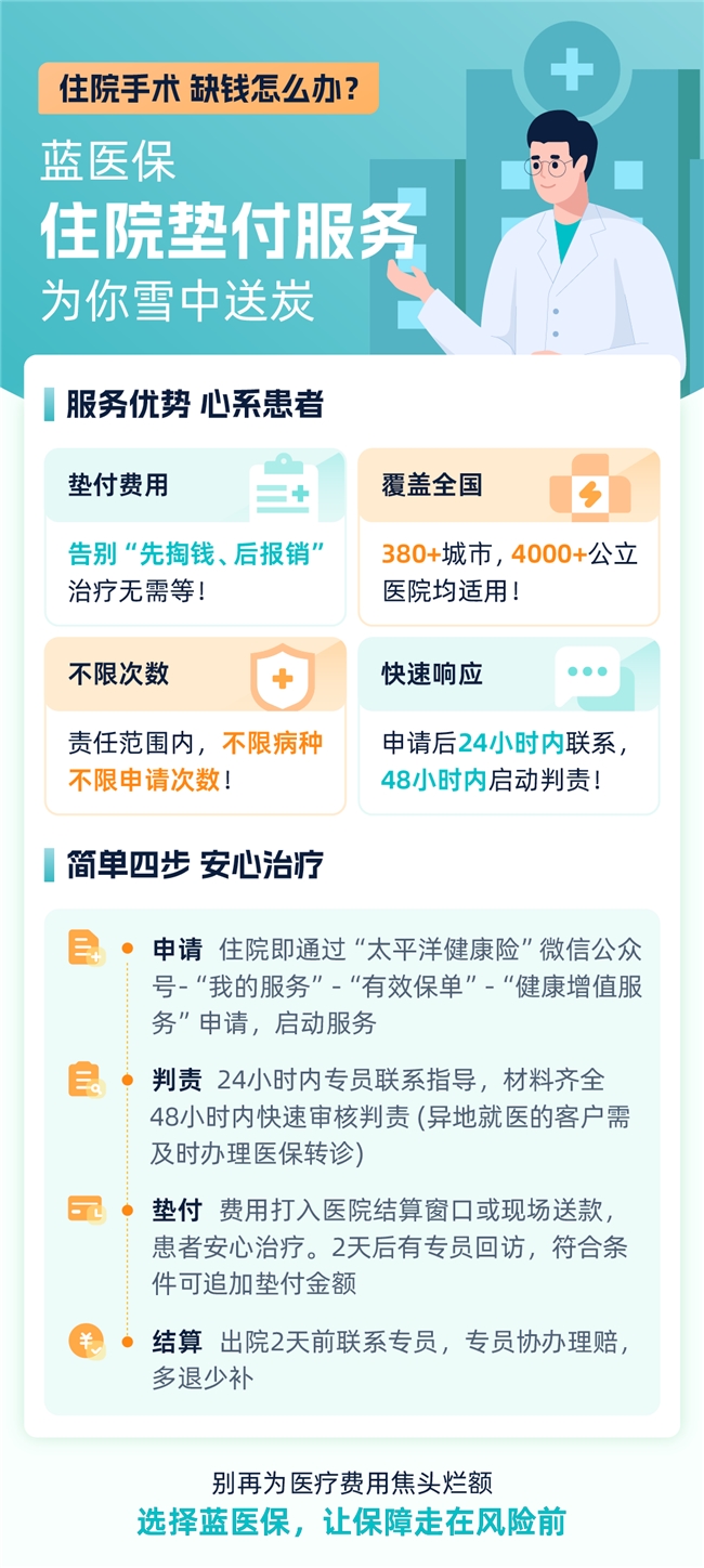 服务(好服务):配备『名医点诊』、住院垫付(董先生案例中垫付超70万)和上海12家医院“出院直赔”。