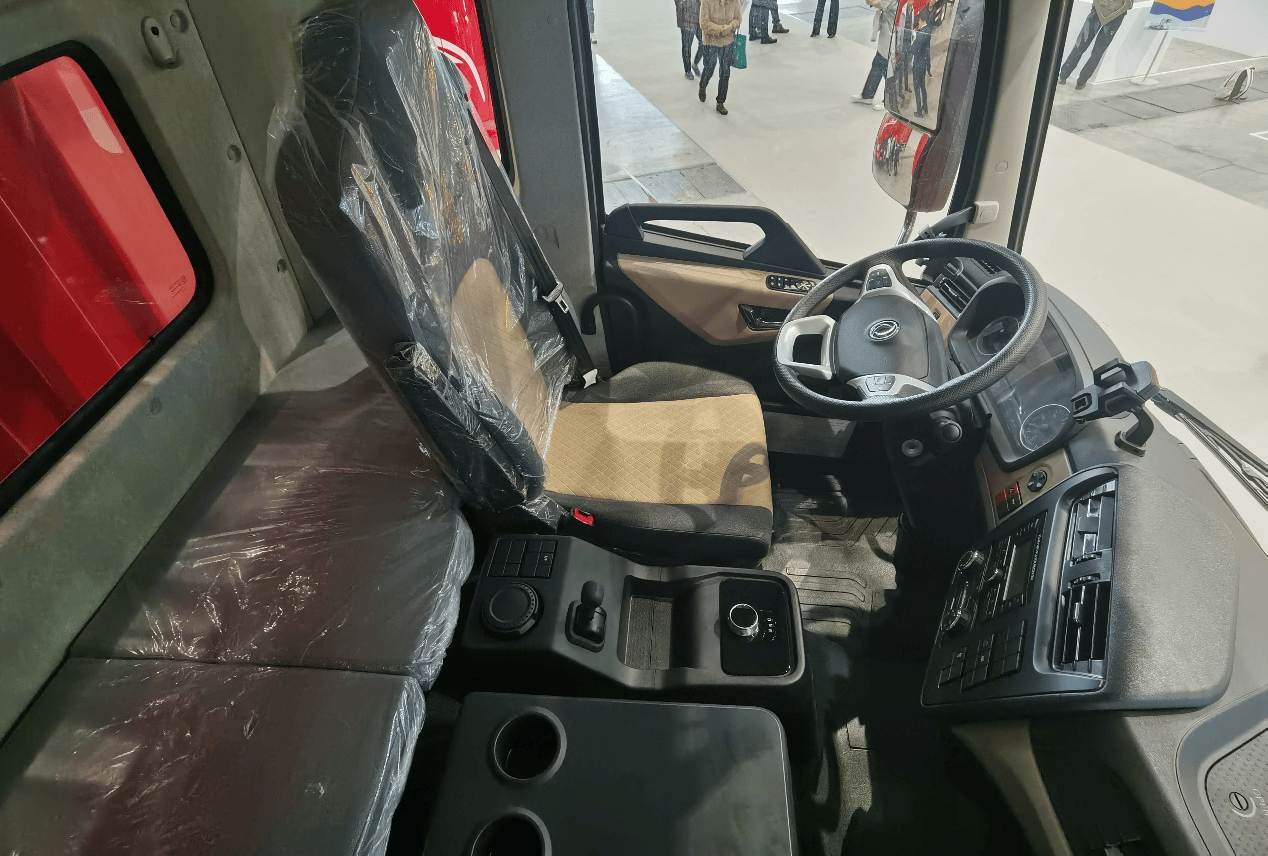 车辆匹配全新二代电驱桥,取消了传动轴,其传动效率高于中央驱动。电机额定功率150kW(204马力)、峰值功率252kW(343马力),从之前的2挡升级为4挡变速箱,轮端最大输出扭矩为39000牛米,可满足各种恶劣路况和上陡坡的动力需求。在补能效率方面,匹配双枪充电,最大电流可达到600A,30分钟即可从SOC20%充到80%,大幅提升运输效率,也可以拓展电动中卡的使用场景。