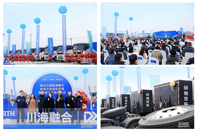 行业观点指出,本次“战略签约+园区启幕”的模式,通过场景建设与车辆投放的协同推进,构建了可复制、可推广的“青白江样本”,不仅强化了成都国际铁路港的绿色集疏运体系,也为全国同类物流枢纽推广新能源重卡提供了具有参考价值的实践路径。今天,深圳润杰以绿色物流运输、充电补能建设为核心,川海融合发挥大宗贸易整合优势,创维汽车领军新能源重卡运输与数智化平台建设,强强联合,协同赋能,以317、318国道及川渝藏地区为依托,共建西部新能源物流通道,为西部区域高质量发展注入强劲动能,开启定制化物流绿色发展的新篇章!